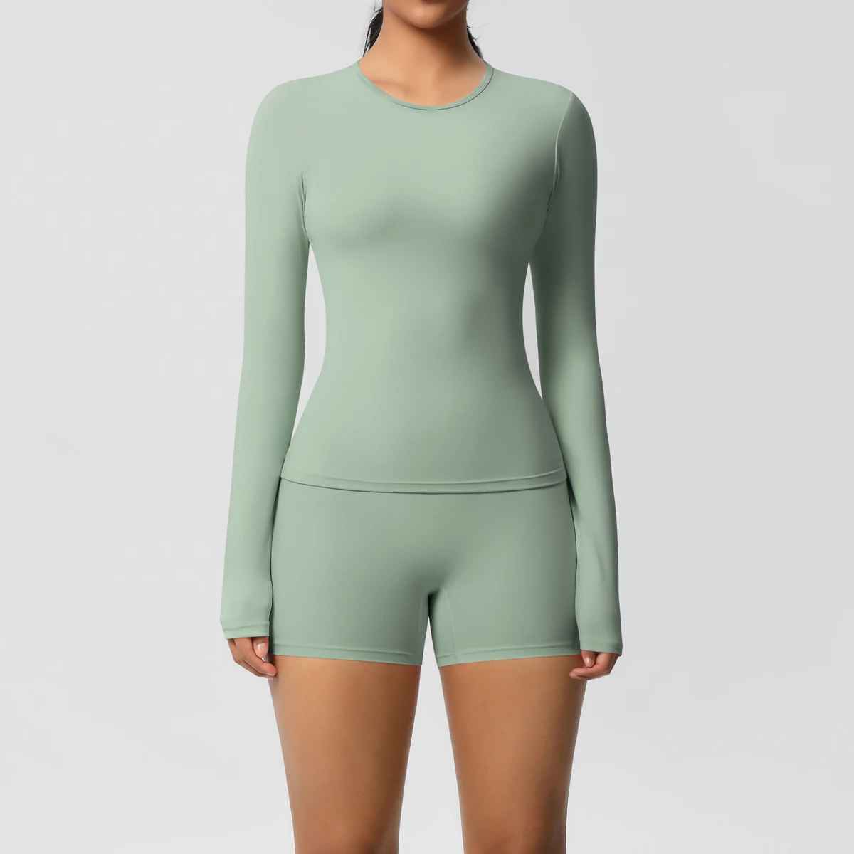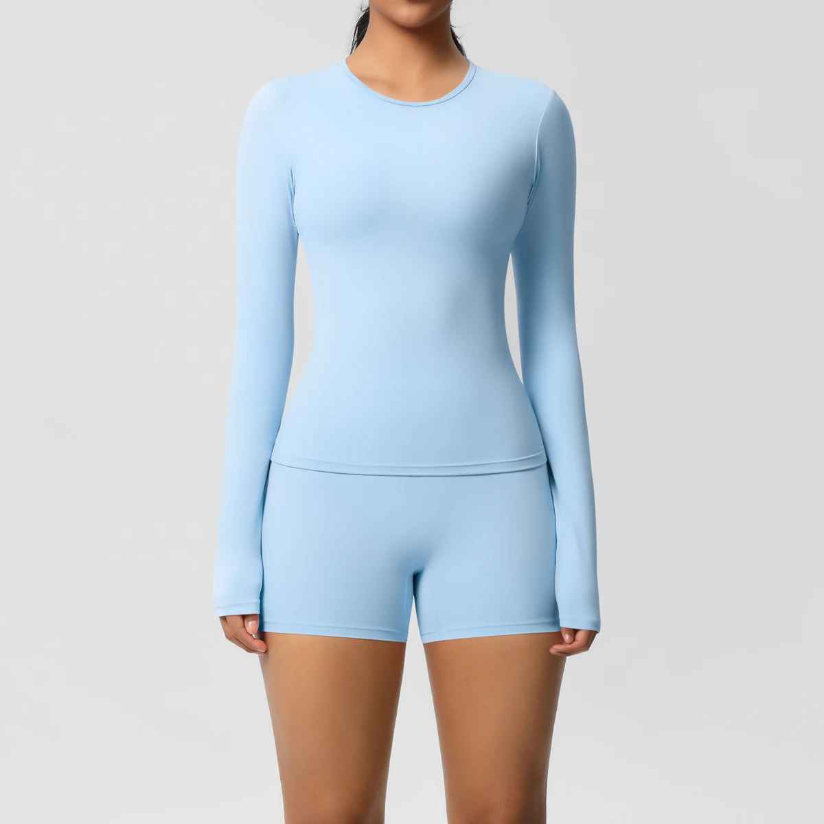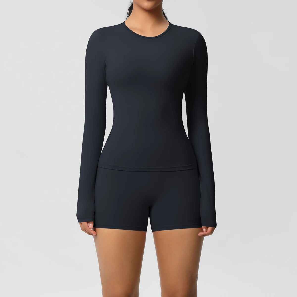 Composé d’un crop top près du corps et d’un short taille haute, il épouse parfaitement les formes tout en offrant une liberté totale de mouvement.